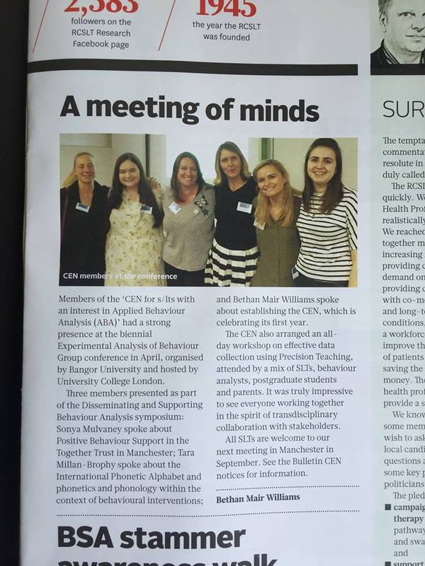 The CEN of SLTs with an interest in ABA is a group set up by Speech and Language Therapists working in collaboration. Bethan Williams is the chair. She is both a speech and language therapist and a Board Certified Behaviour Analyst (BCBA).